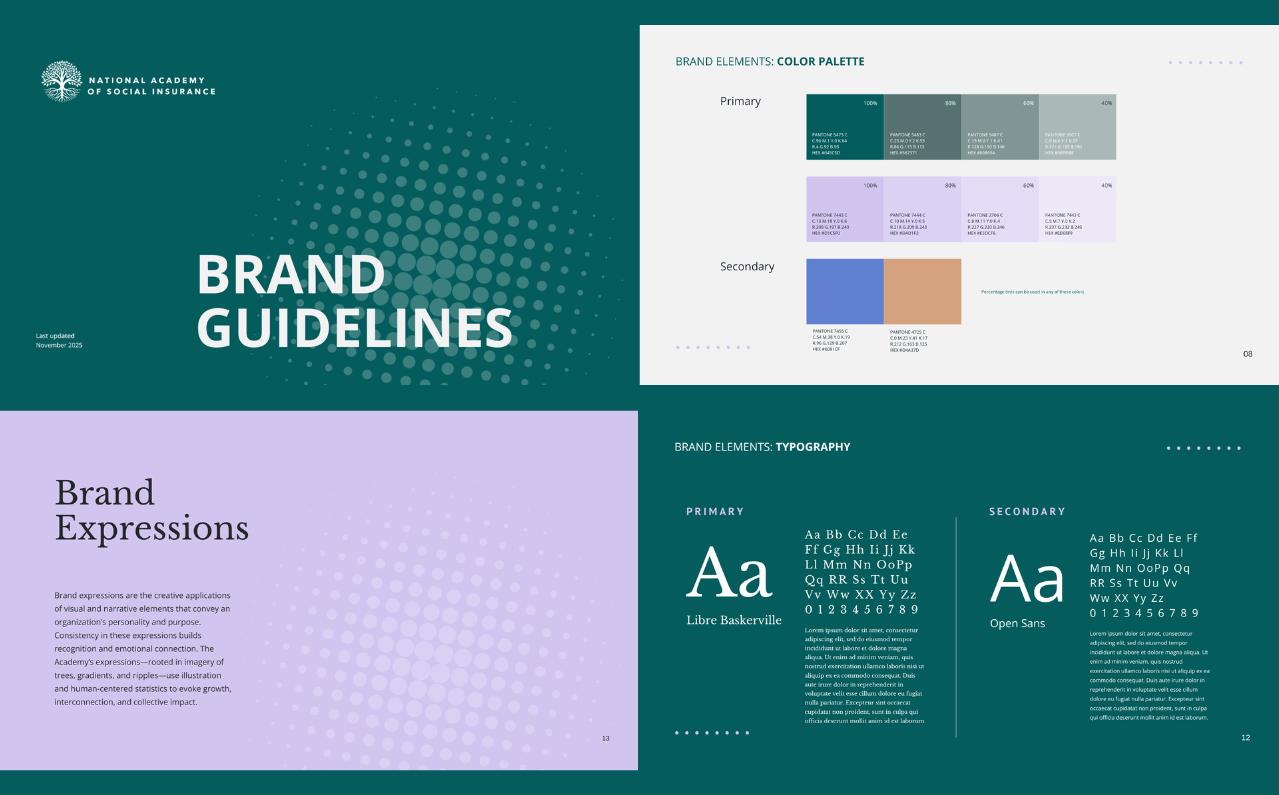 For almost four decades, the National Academy of Social Insurance has united top experts to strengthen Social Security, Medicare, Unemployment Insurance, and other social insurance programs. As a new CEO aimed to elevate the Academy’s public presence amid growing need, The CareWorks Project reimagined its visual identity for greater relevance and impact.